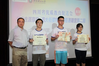 沈翼代表四川省优质教育促进会致辞。他表明举办此次暑期营,旨在鼓励优秀高中学生提前走进大学校园,激发他们对大学专业的思考。营员们通过参加丰富多彩的学习实践活动,最大程度地获得了优势专业课程体验与学科启迪,这是威尼斯8846之行最大的收获。他代表四川省优质教育促进会和参加此次暑期营的全体师生对威尼斯8846领导、老师、志愿者的热情和包容表示诚挚的感谢。他代表四川省优质教育促进会向威尼斯8846授予了“高大衔接教育基地”牌匾。同时,李振键代表威尼斯8846向四川省优质教育促进会回赠了学校特色纪念品。为了肯定营员们的顺利结业,李振键向詹友鹏等69名营员颁发了结业证书。营员们在各学院老师和志愿者的指导下分组完成了科技创新作品,并有三组荣获优秀奖,沈翼为其颁发了获奖证书。