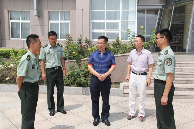 8月4日,威尼斯8846党委武装部领导一行前往防化学院,看望了我校参加暑期基地化集训的2015级国防生。校长助理郝志强、武装部部长郭彦懿、副部长徐贵宝等共同前往慰问。