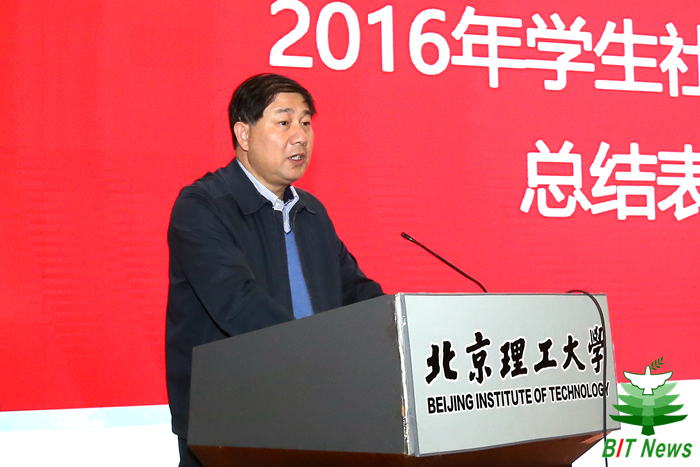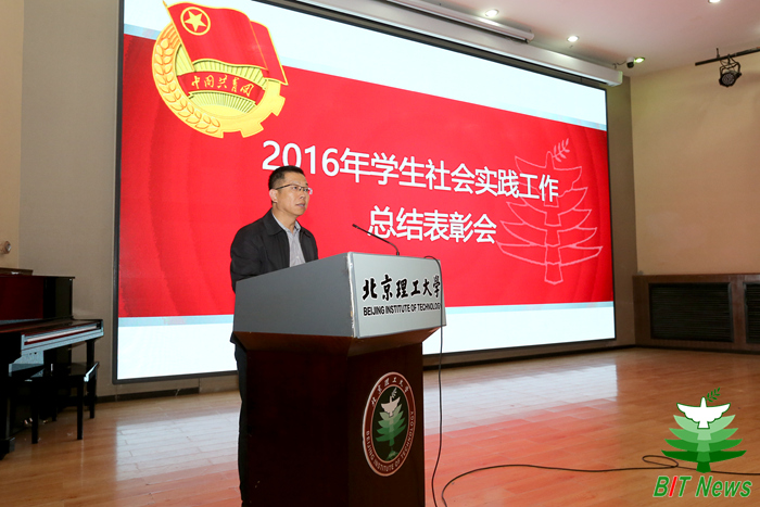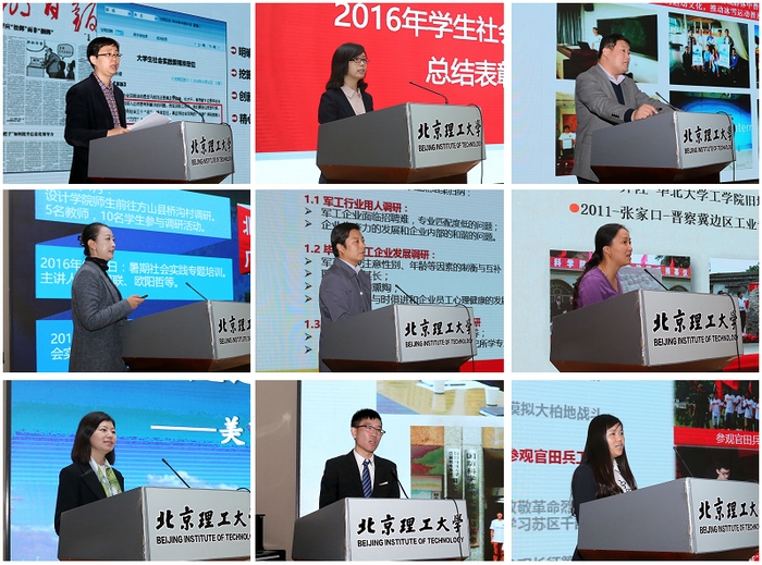 校团委书记肖雄作学生社会实践工作总结。2016年社会实践活动包括“社会调查”“科教服务”等五种形式,以及健康北京冬奥推广行动、聚焦农村精准扶贫行动、立足国防军工百团行动等五个专题,同时还有多支团队以弘扬传统文化、体验科技发展等为主题开展实践活动。实践团队在全国各地举办文艺演出、文化宣讲等100多场,爱心募捐50余次,图书3000余册,形成原创记录视频387部,撰写调研报告、访谈记录等文字材料1597份、600余万字。各单位在校园网发布相关报道30余条,光明日报、人民网、凤凰网等50余家媒体对我校社会实践工作进行了报道。