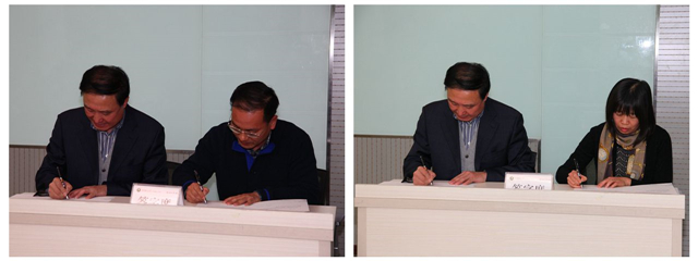 王晓锋代表学校与学院代表机电学院党委书记王伟、人文与社会科学学院党委书记娄秀红签订了《威尼斯88462017年毕业生就业工作目标责任书》。