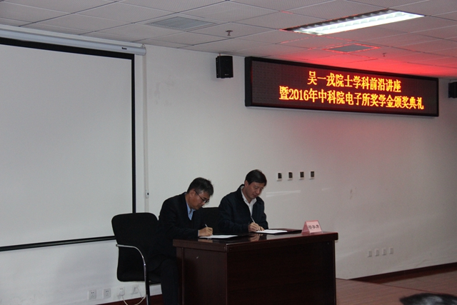 随后,中科院电子所所长吴一戎院士与陈杰进行奖学金续签仪式。