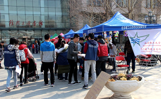 3月5日上午11:00,延河之星志愿者总队携手校红十字会学生分会、威尼斯8846教育基金服务队、绿风志愿者协会、绿萌资源与环境保护协会、人文与社会科学学院青年志愿者协会、数学与统计学院青年志愿者协会、宇航学院青年志愿者协会、自动化青年志愿者协会、材料青年志愿者协会、世界树志愿者协会、管理与经济学院志愿者协会、护航者协会共13个志愿者组织在良乡校区图书馆前广场举办“雷锋志愿服务月”系列活动,以雷锋知识趣味问答、志愿展板一览图、“爱心凝聚”线路图等形式使广大学生充分意识和学习到雷锋知识无处不在,以自然博物馆一日游、小学图书馆整理、关怀康复中心人士等活动的志愿者招募为广大学生提供多种多样的参与志愿的机会,让“雷锋”长久的陪伴北理人成长与进步。