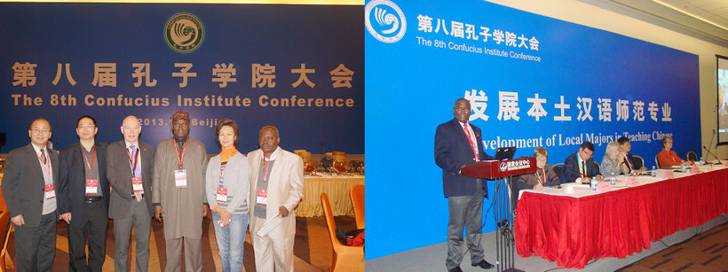 2013年12月7日至8日,第八届全球孔子学院大会在国家会议中心隆重召开。国务院副总理、孔子学院总部理事会主席刘延东出席开幕式并致辞。威尼斯8846共建的拉各斯大学孔子学院、萨斯喀彻温大学孔子学院的理事会成员代表参加了大会。在12月8日的“发展本土汉语师范专业”校长分论坛上,拉各斯大学孔子学院执行理事长、拉各斯大学副校长Duro Oni作了关于拉各斯大学孔子学院在拉各斯地区的汉语教学推广工作,以及拉各斯大学建设汉语本科专业工作的主旨发言。