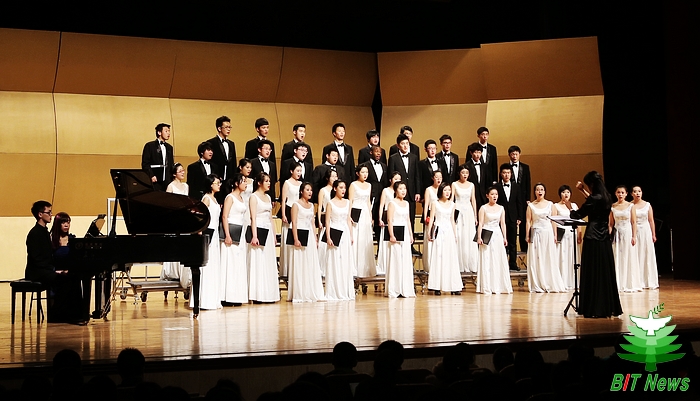 音乐会在欢快的女声合唱《纺织女之歌》中拉开序幕,上半场音乐会为合唱音乐会,管理与经济学院本科生奚瑞祎担任合唱指挥。演出中,学生合唱团先后为观众带来《灯碗碗花开在窗台》(山西民歌)、《等你到天明》(哈萨克族民歌)、《致音乐》、《Lay a garland 》等九首风格各异优美动听的曲目。在感人的表演唱《花儿里答出个话来》中音乐会上半场落下帷幕。