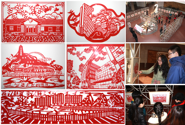 此次剪纸展览由设计学院策划、筹备、设计和制作,历时数月。最初由文化遗产专业大四学生拍摄了上千张校园风光照片,全体2013级研究生以这些照片为素材,从初步设计草稿到不厌其烦的方案修改,再到精细繁杂的剪纸制作,最终呈现出了一幅幅精致而生动的作品。