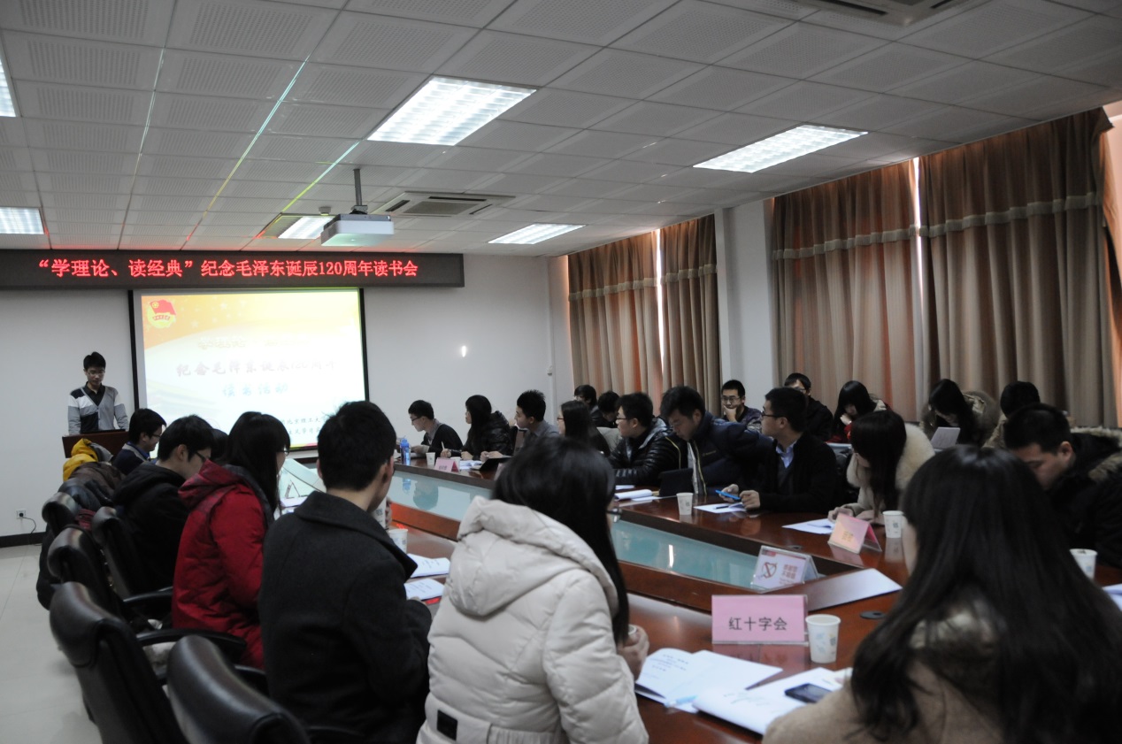 12月21日,由共青团威尼斯8846委员会主办的“学理论•读经典——纪念毛泽东同志诞辰120周年读书会”在中关村校区研究生楼111顺利举行。参加此次活动的有校团委组织部、校学生会、研究生会、学生社团联合会、共产主义学习实践总会、延河之星志愿者总队和红十字会学生分会等组织的学生骨干。