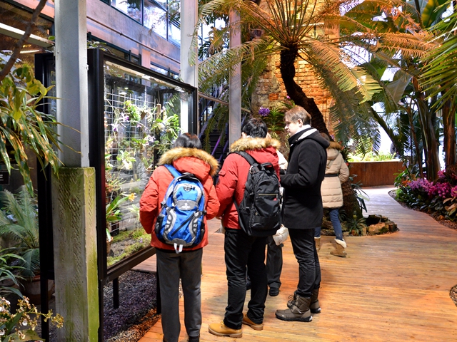 当天下午,科考团根据生态科考的各项课题以及队员每人一项的人文社科类课题进行分组调研。科考团1组在莫斯科大学植物园进行了参观调查。该植物园占地面积近50公顷,具有300多年历史,是俄罗斯历史最为悠久的植物学科学园。园内管理员带领队员在棕榈树植物区、草系植物区、松柏植物区等分区进行了主要参观。管理员向科考团介绍了园区的历史、植物种属分布、种属数量、种属来源等情况,尤其在耐寒、耐旱植物种属及其特点上做了详细说明。1组还就俄罗斯生态法律规范在莫大调取了有关原文条文及案例。2组实际调研了莫斯科公共交通枢纽的建设与布局,俄罗斯代表性建筑风格以及莫斯科绿化植被覆盖率、主要品种以及养护情况,连日来的大学还让科考队员们有机会观察调研极端天气下市政交通应急机制。