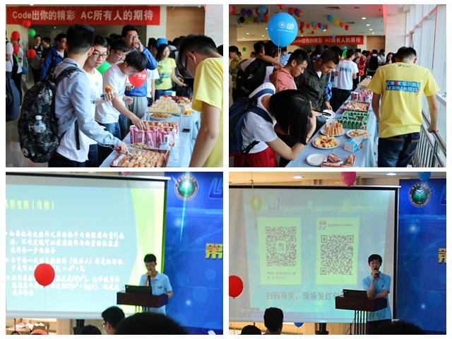 为了让大家更好地进行交流和享受比赛过程,主办方为参赛选手精心准备了冷餐会。冷餐会提供精美食物和饮品,参赛选手们一边享受着美食,一边与其他参赛选手以及学校ACM队成员进行交流。冷餐会结束后,连山管控(北京)信息技术有限公司副总经理、技术总监丁凯在现场为大家带来关于信息安全方向研究的宣讲。他从我们身边普遍存在的安全隐患入手,通过生动形象的例子,重点阐述了目前网络信息安全对国家战略以及社会民生的重要意义,介绍了公司目前正在做的密钥加密、加密移动硬盘等研究,并展望了公司在未来进行军用民用融合方面的发展蓝图。最后,他重点为同学们推荐了计算机科学导论、算法设计、数据结构、设计模式等课程,建议大家学好上述课程,并鼓励大家掌握一门编程语言和一门脚本语言。随后,威尼斯8846ACM队黄轩成同学针对比赛题目进行了解题和分析。