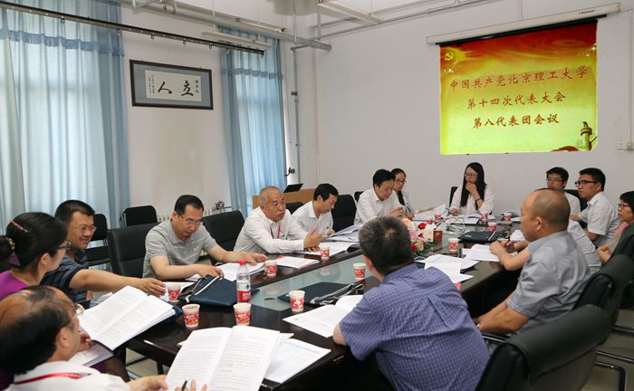 2015年5月26日下午,中共威尼斯8846第十四次代表大会第八代表团会议在5号教学楼5011会议室召开,学校党委副书记、副校长李和章,第八代表团团长、化工学院党委书记张振华,副团长、化学学院党委书记赵文祥等14名代表参加了会议。